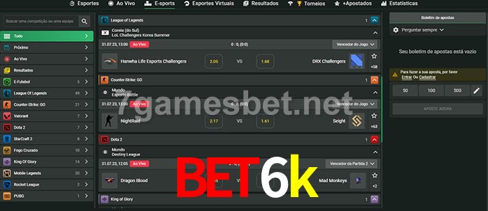 O bet6k oferece uma grande seleção de opções de apostas em e-sports com probabilidades competitivas